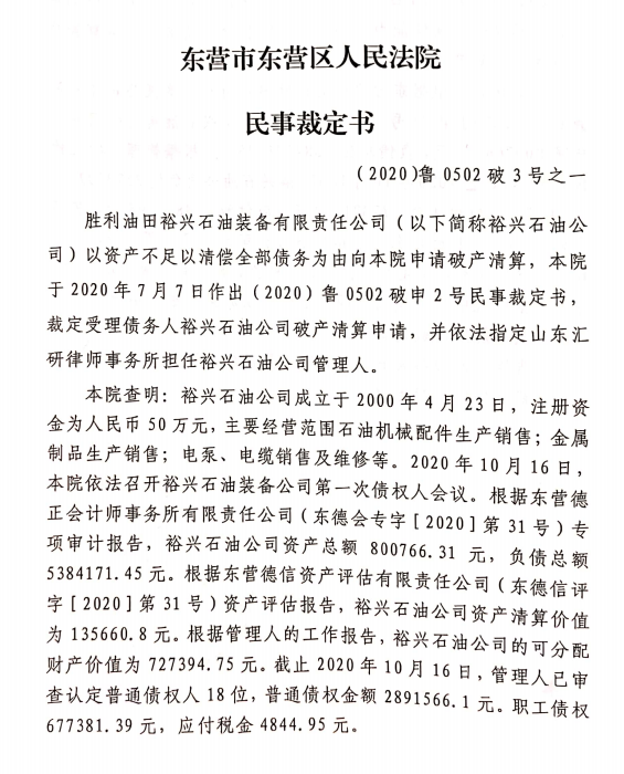 山东省汽车工业总公司破产财产分配方...