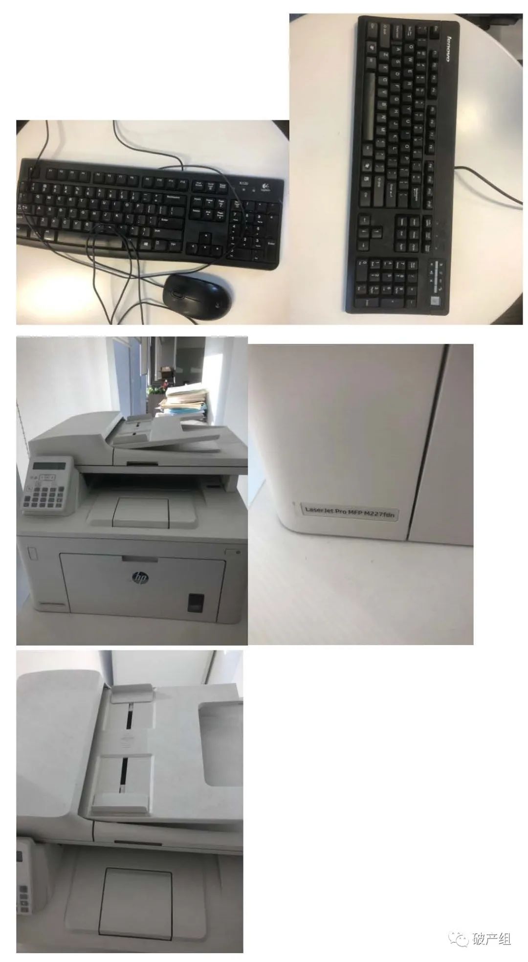 1、拍卖标的物办公用品一组,包括:1台扫描仪、1台装订机、1台打印机、2台显示器、2个键盘、1个鼠标。