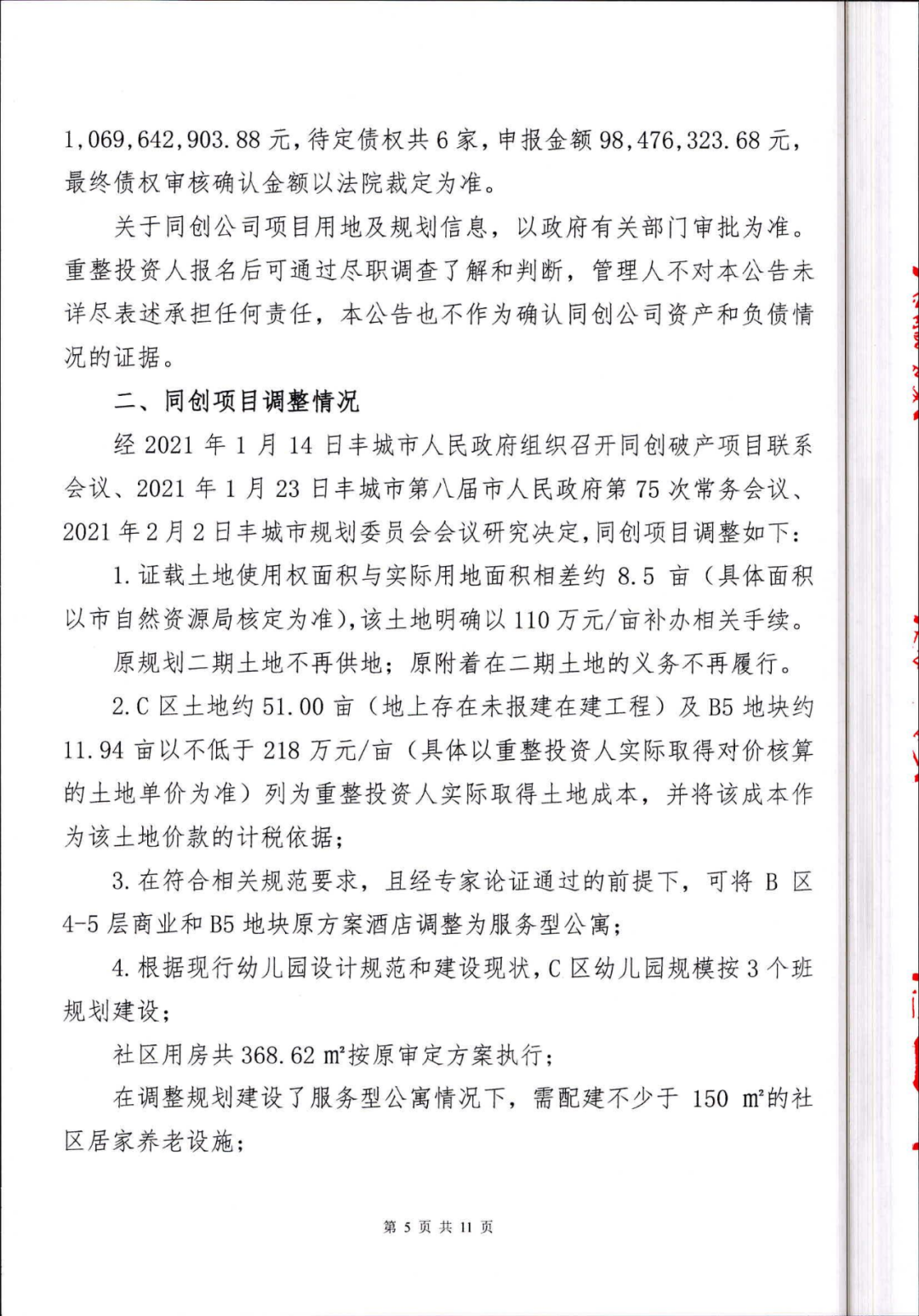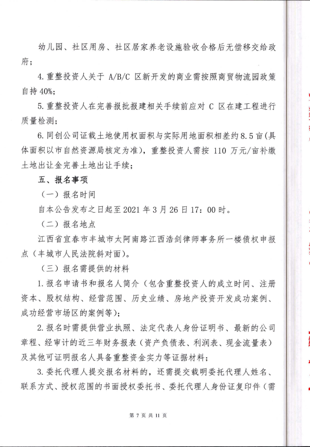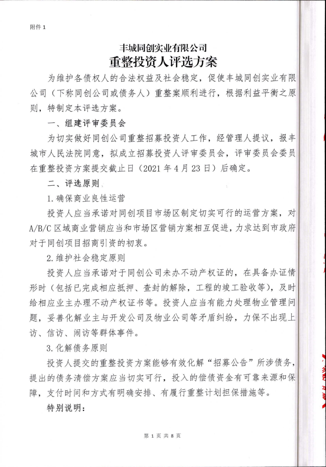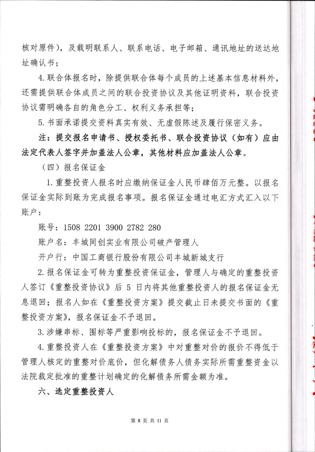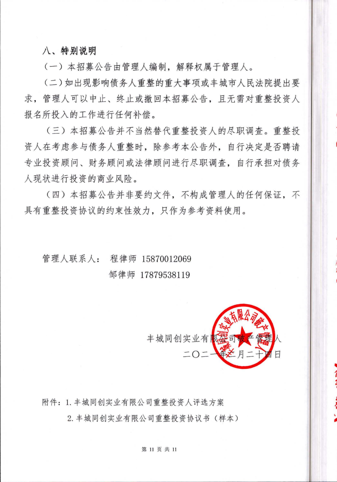 丰城同创实业有限公司重整投资人招募公告