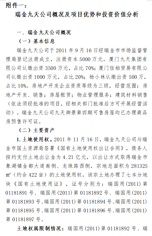 附件一:瑞金九天公司概况及项目优势和投资价值介绍