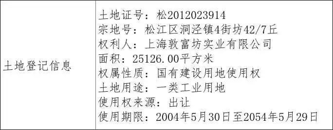 敦富坊公司主要资产为位于上海市松江区洞泾镇洞舟路518号的工业厂房: