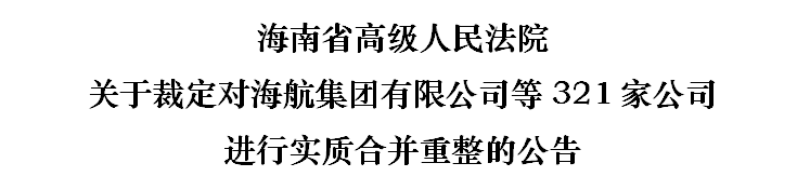 海南省高级人民法院于2021年3月13日依法裁定对海航集团有限公司等321家公司进行实质合并重整。