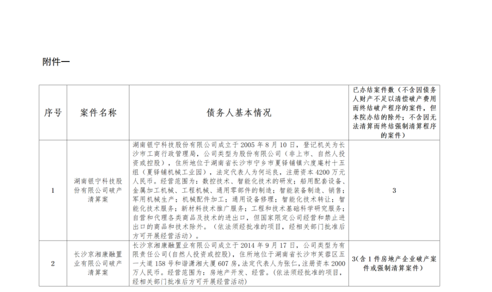 关于湖南银宁科技股份有限公司破产清算案等七案选任管理人公告