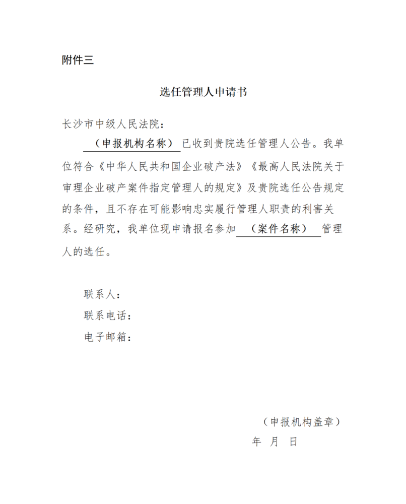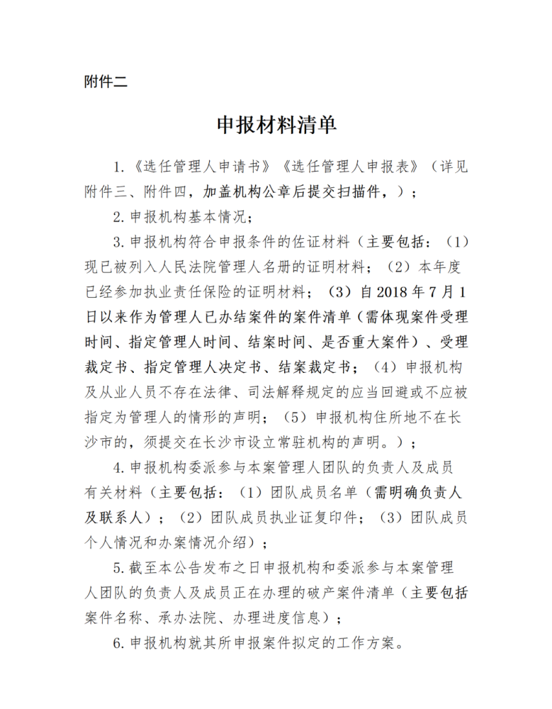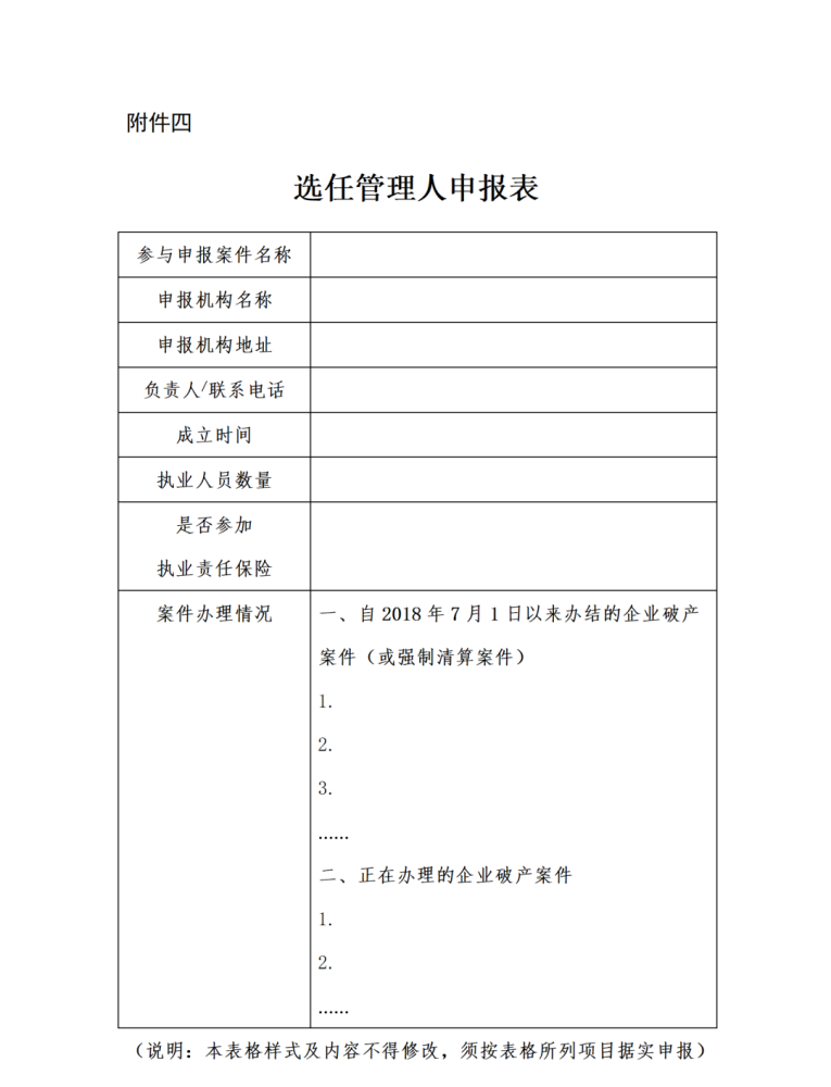 3.申报机构须确保所提交资料真实、合法,如经核查发现存在虚假及违法情形,该机构将不得再担任管理人(或清算组),本院将其列入管理人黑名单;