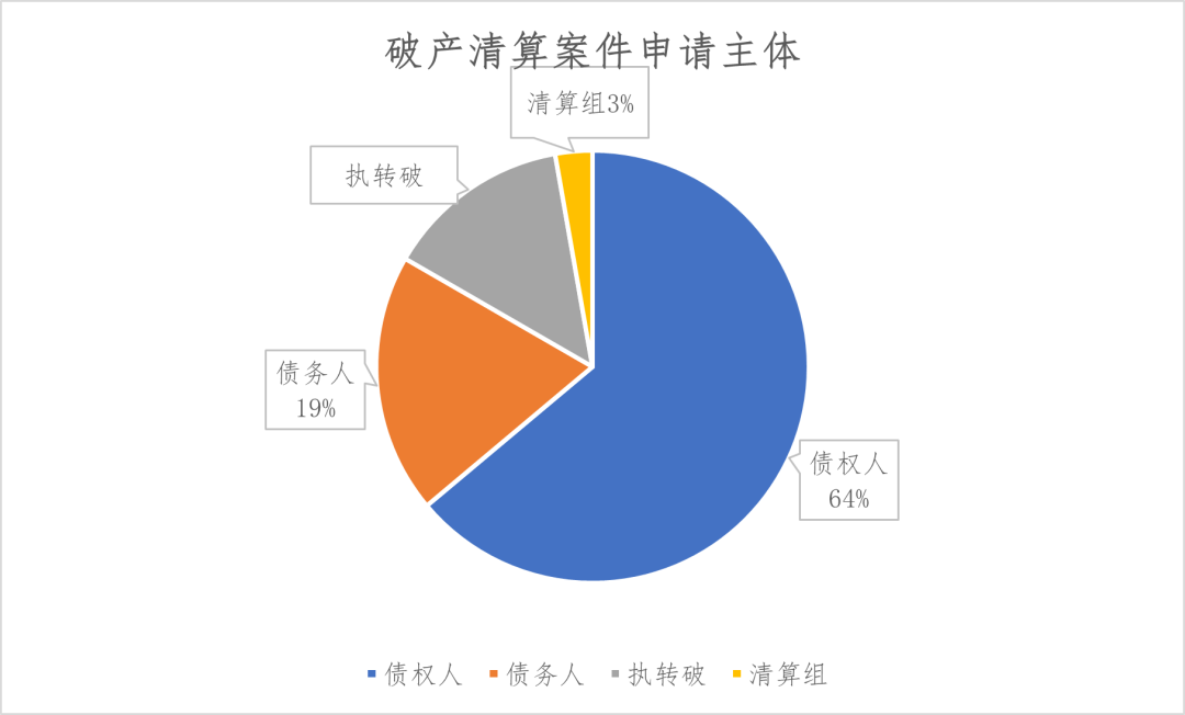 检索结果中,对于申请转重整的清算案件本身,明确载明申请破产清算的主体的案例共36份(不含关联企业合并破产的重复文书),其中,由债权人申请破产清算的案例23份,由债务人自行申请破产清算的案例7份,执转破案例5份,清算组申请的案例1份,具体如下: