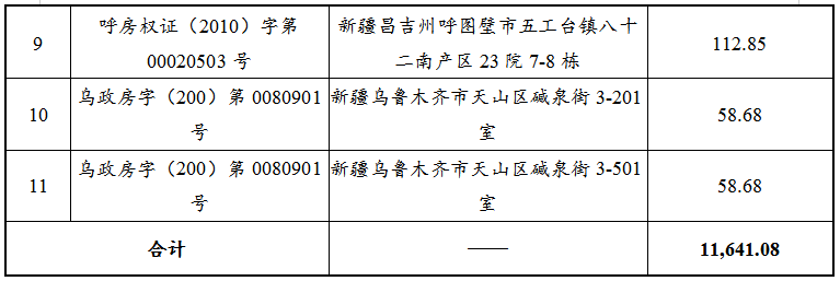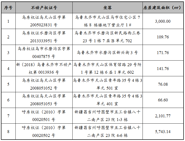 重整资产范围内的实物资产包含:房产11处,建筑面积合计11,641.08㎡;土地使用权共2处,合计面积206,219㎡;车辆8辆;以及少量办公设备。